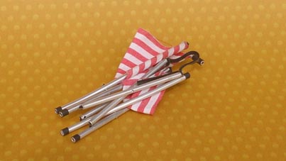 アルミパイプ 3o ストライプの生地 合成革(黒)、ゴムひも 収縮チューブ 他