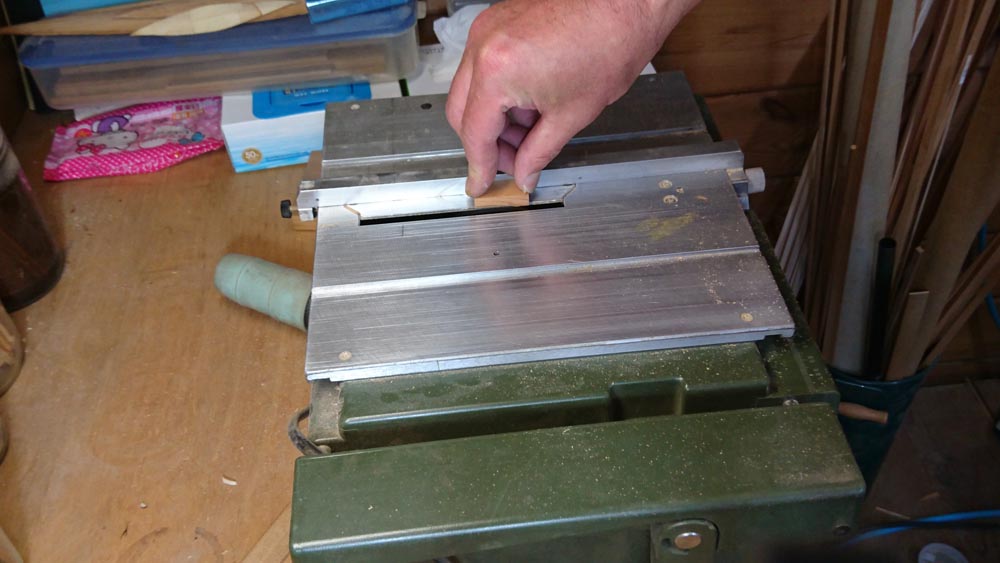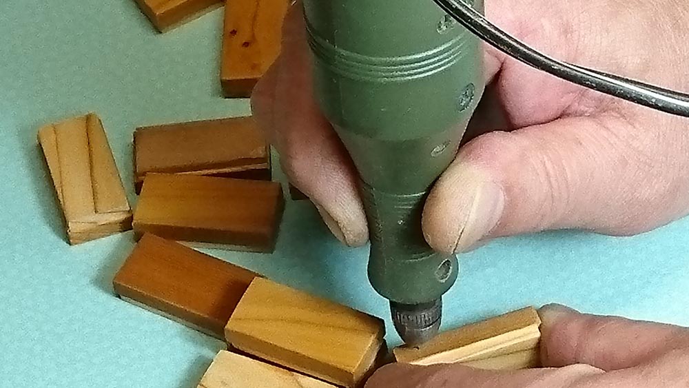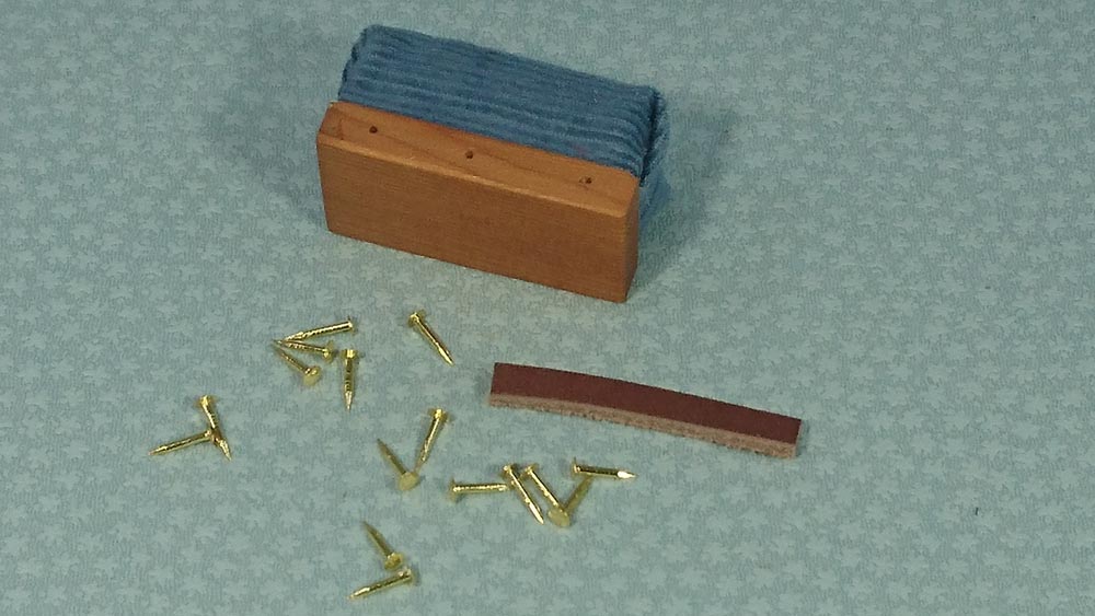 組み立てる前に、真鍮釘を打ち込む下穴を開けておく |