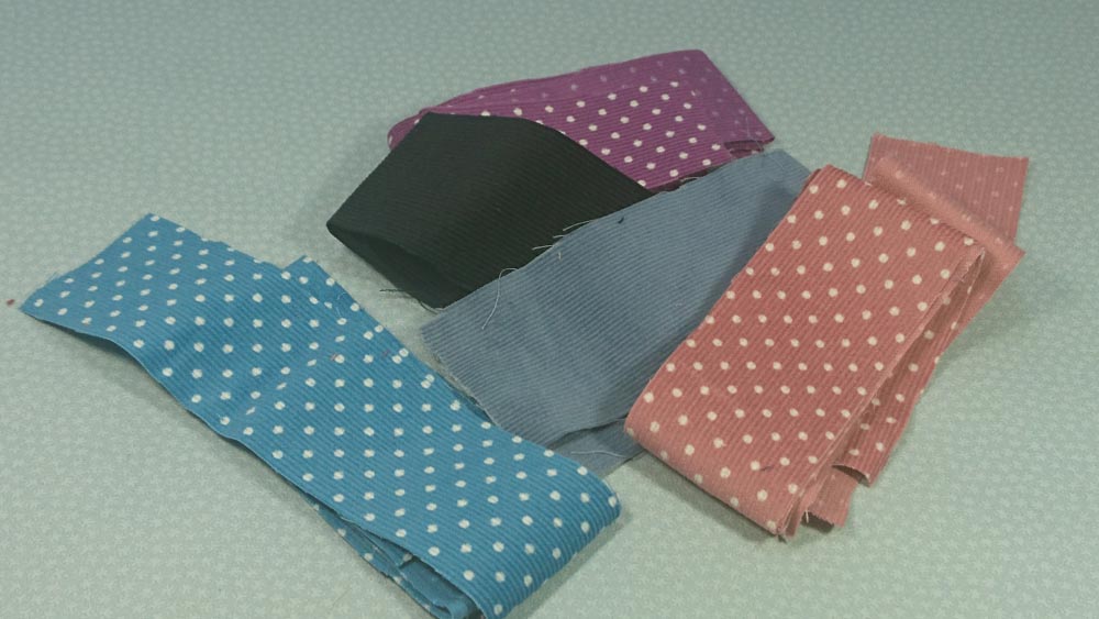コーディロイ風の布地を用意し、55X35oにカットする |