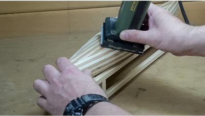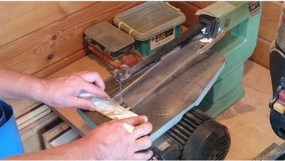 外側のサンディングが終わったら、ストロングバックと フォームを外し、内側のサンディングを行う |