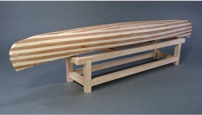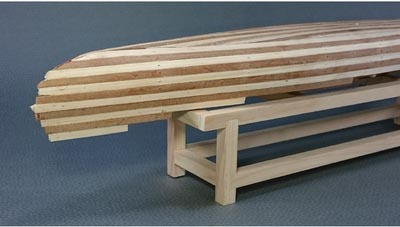 シアーラインに沿って側板をカットしたところ カナディアンカヌー船体が出来上がった |