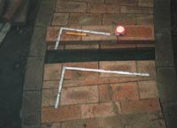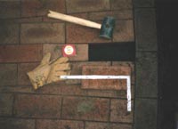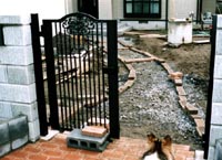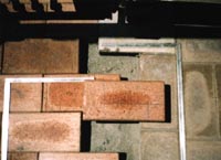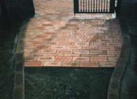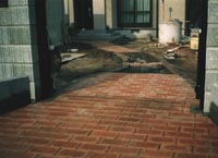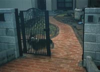 玄関側と門扉側からそれぞ れに敷き込んで来て、中間 のこの部分で左右のジョイ ントをする。 |