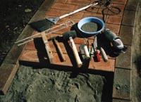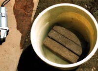 レンガは切断する時には水 含ませると多少切りやすい ので、2〜3分水に浸けて から切断すると良い。 |