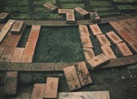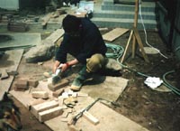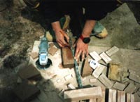 複雑に切断したレンガのパー ツを入れ込んで行く。 |