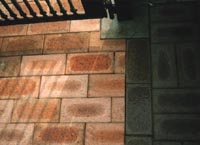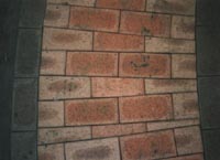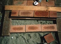 玄関のステップに沿って敷き 込みをスタート ランニングボンドのパターン で敷き込んでいく。 |