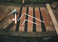 レンガを敷き込む上でどう しても半端な部分ができる 隙間の寸法取りをする。 |