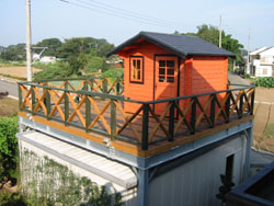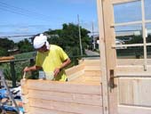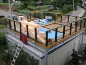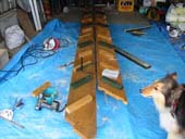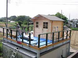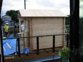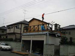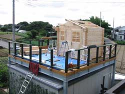 本体部分のが組み上がった。 ここで本日の作業は終了。 雨避けのシート掛けして明日の 屋根貼りに備える。 |