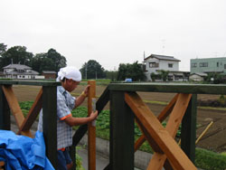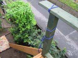 | 水糸を張り続いて手摺りの取り付け | 2×4材で手摺り柱を立てる | 2×6で手摺りの取付! |