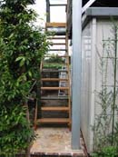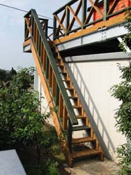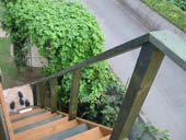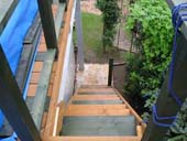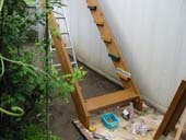 | レベルを確認して踏み板の取り付け | デッキ上部から見た階段 |