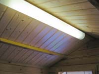 | 照明器具用の配線コード | 天井も張り終わり、照明器具も付いた!! |