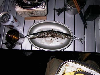 「おいおい何をやってるんだ?」 南雲さんが秋刀魚を焼き出す!イカちゃんがホタテを焼く! 「これが、朝食?・・・」 朝から宴会モードに突入! |
