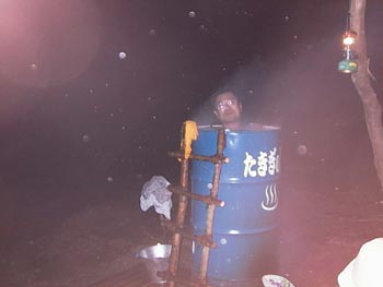 新潟三条の五十嵐さん、「いがらし」ではなく「いからし」と言うらしい?三条のイカちゃん入浴! 続いて町役人南雲さん!この人本当に公務員??こうしてドラム缶風呂大成功のうち夜が更けて行く・・・・・ |
