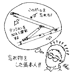 船体に張りを加えるテンションポールをセットする時に使う、テコの役割をするポールを忘れて来てしまったようだ!!