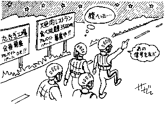 焼き肉定食が食べたいなぁ〜」と、町田さんが道路際のレストランの看板を眺めている。