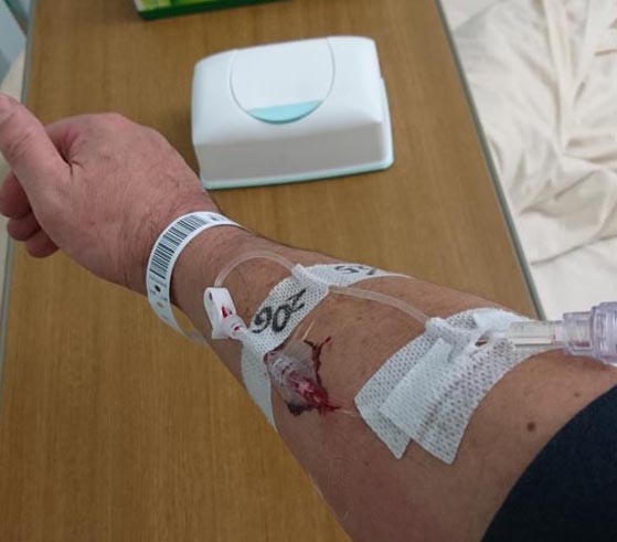 | ボールのように腫れ上がった左手、自分の手じゃないみたい、まるでホラー映画の特殊メイク |